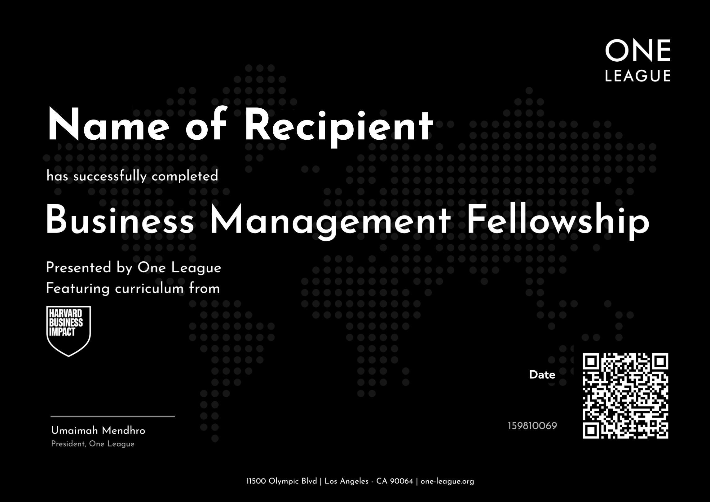 “Harvard Business Impact is pleased to support One League in their mission of democratizing access to world-class management education. The delivery of the core curriculum through the case method pioneered at Harvard Business School is evident of One League’s commitment to rigor and high quality learning experiences that should be accessible to all qualified students, regardless of their means.”